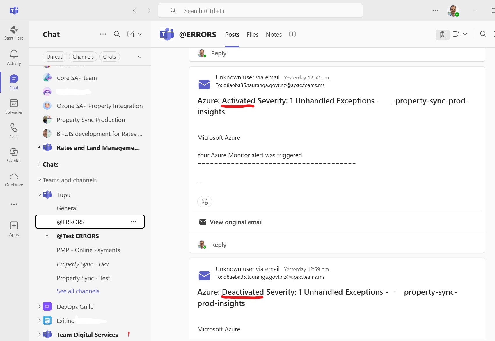 Which means every day at the same time we get false positive alerts (activated + deactivated) in our Teams channel: