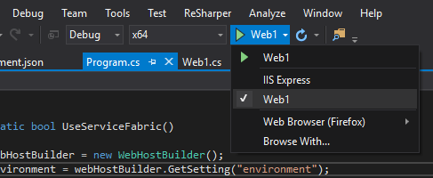 If the ASPNETCORE_ENVIRONMENT setting is Development, then it won’t use Service Fabric at all and will just use a plain ol’ ASP.NET Core WebHostBuilder to start the web host.